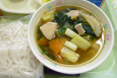 ネギ間うどんとは「焼き鳥」のネギ間をヒントに作られた麺献立です。