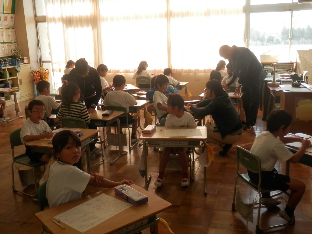 今日は、2年生の学びタイムに教務の先生が入り算数の勉強をしました。