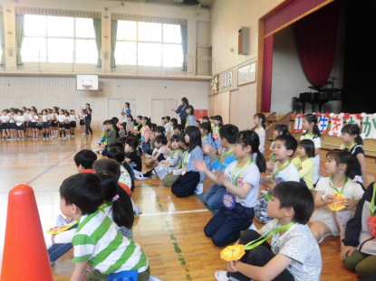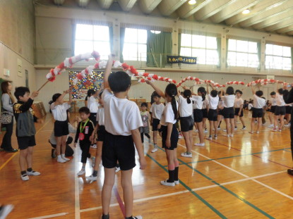 今日は1年生を迎える会を行いました。だしものやゲームで楽しく盛り上がりました。子供達の笑顔も輝いていました。