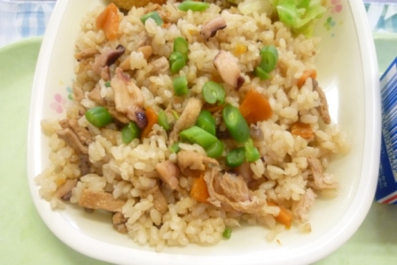 4月の給食の目玉「たこ飯」は全クラスほぼ完食。