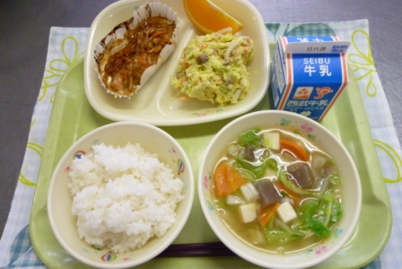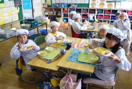 今日の『さつま芋のサラダ』は、3年生の学年園で収穫された