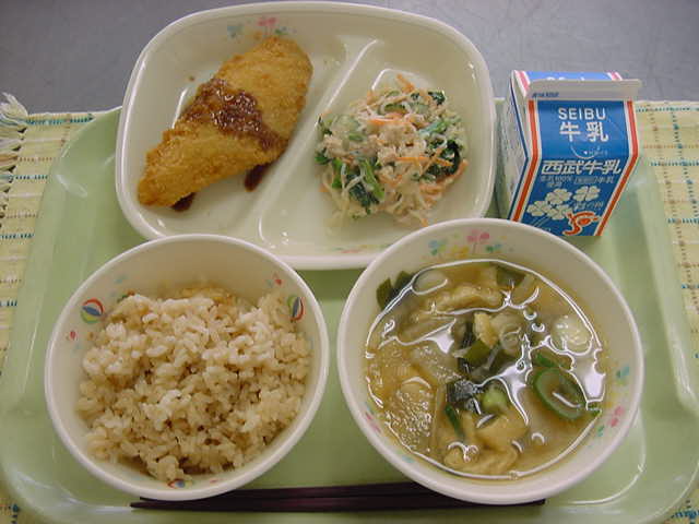 牛乳 茶飯 鮭チーズフライ 上州サラダ