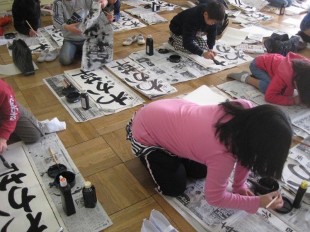 書き初め制作会を行いました。3~6年生は毛筆、1・2年生はペン書きです。子ども達は練習の成果を発揮していました。