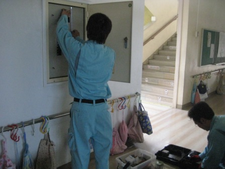 先週2階の教室に電気関係の不良状況があり、2日の午後、修理工事を急遽行いました。これで安心です。