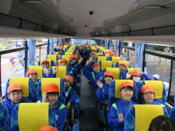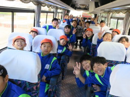 5年生が1泊2日の林間学校に出発しました。みんな元気いっぱい、わくわくドキドキの表情です。