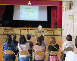 子供安全見守り講座では、埼玉県ネットアドバイザーの方からスマホやSNSなどの危険性についてお話をしていただきました。