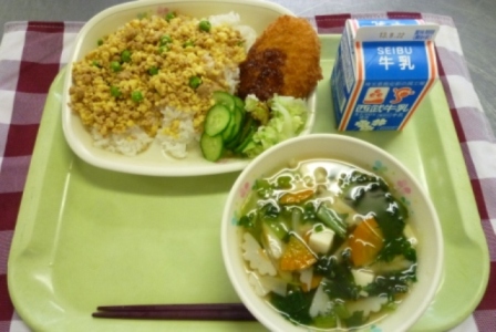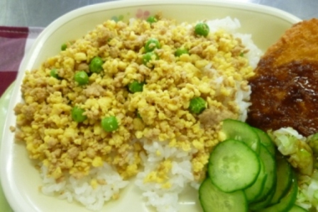 今日は、子どもたちの大好きな「そぼろご飯」です。