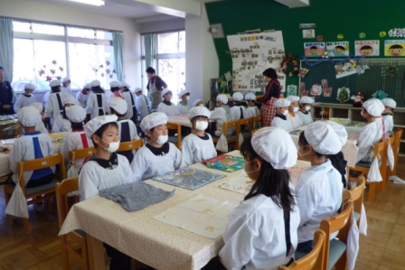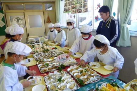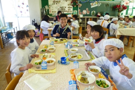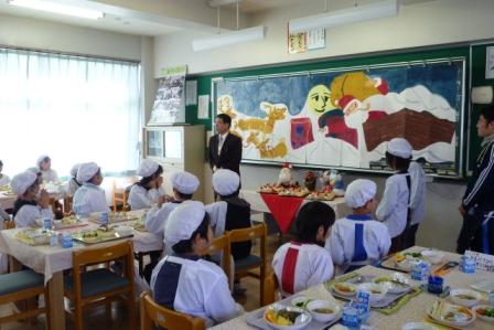 教頭先生から挨拶を頂いた後、みんなで楽しくいただきます。