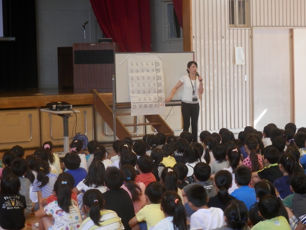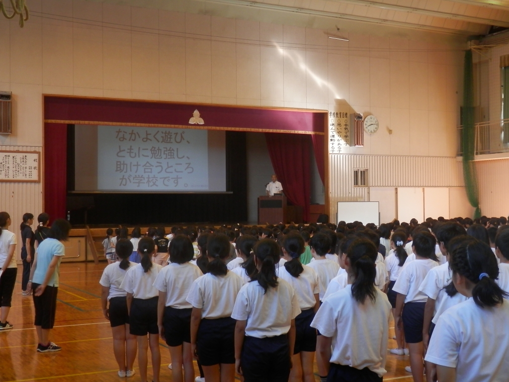 5日(火)は、全校朝会でした。「なかよく遊び、ともに勉強し、助け合うところが学校」がテーマで話をしました。人には誰でも得意なこと、苦手なことがあります。だから学校には勉強する場所がいろいろあるという話です。困っている人がいたら知らんぷり、知らん顔をしないで行動しましょう。そして、「だいじょうぶ?」「平気だよ」「ドンマイ」という温かな魔法の言葉をかけましょう。その後、井田先生から今月の生活目標「チャイムに合わせて生活しましょう」について話がありました。規則正しい生活を送りましょう。