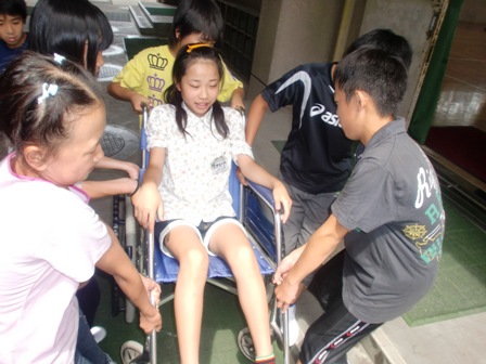 総合的な学習の時間 「心のバリアフリー」の学習で、車イス体験を行いました。