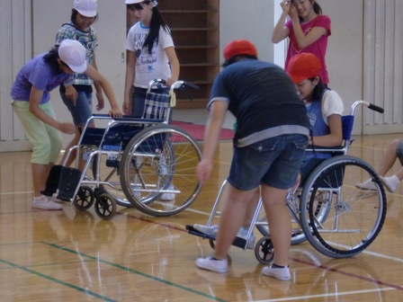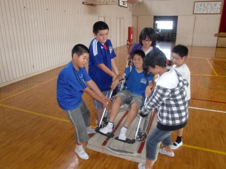 子どもたちは、乗っている人、動かす人、周りで助けてあげる人、それぞれの人の気持ちがわかり、声掛けの大切さに気付きました。また、実際に体験したことで、操作の難しさを実感していました。