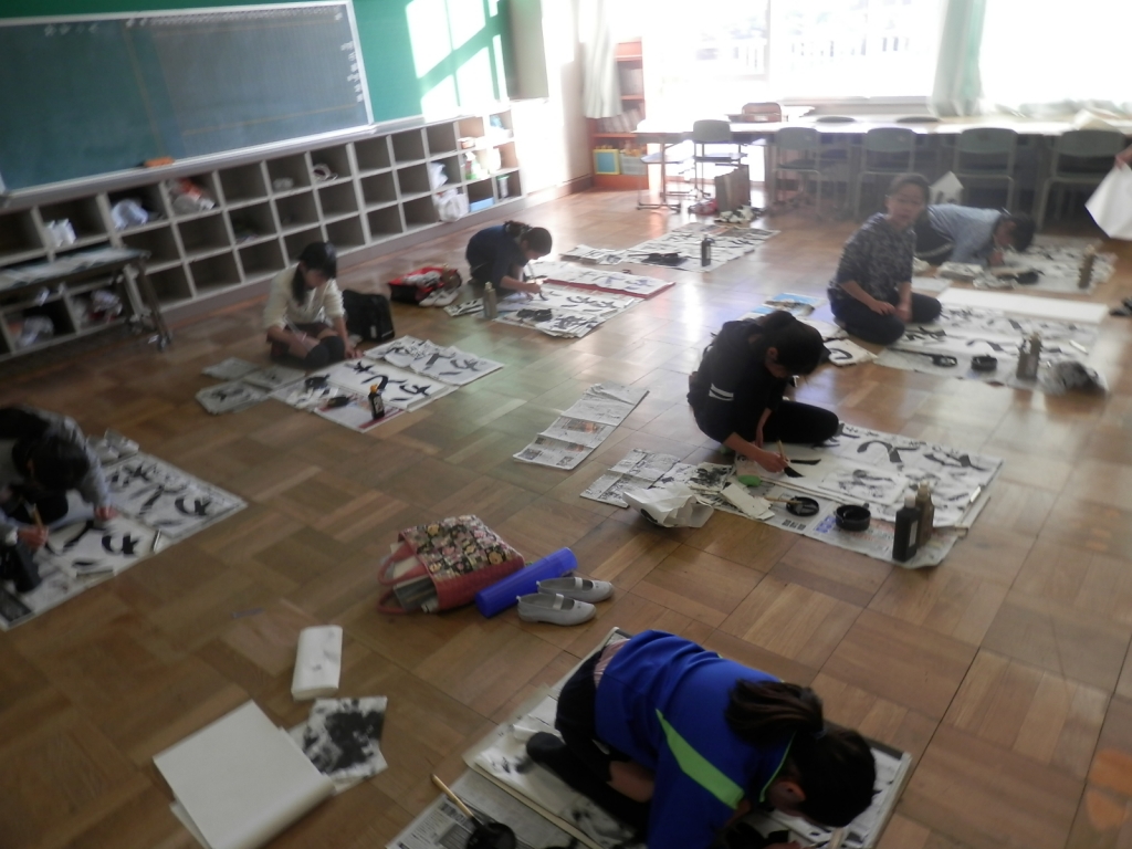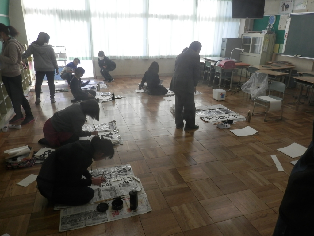 書きぞめ制作会が終わり、学校代表の児童による練習会が始まっています。11日(木)から18日(木)までの6日間が練習日です。子供達は、集中して取り組んでいます。3年生「おせち」4年生「かど松」5年生「大きな志」6年生「初日の出」です。がんばりましょう。