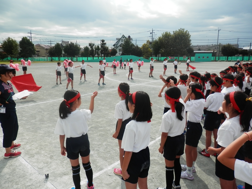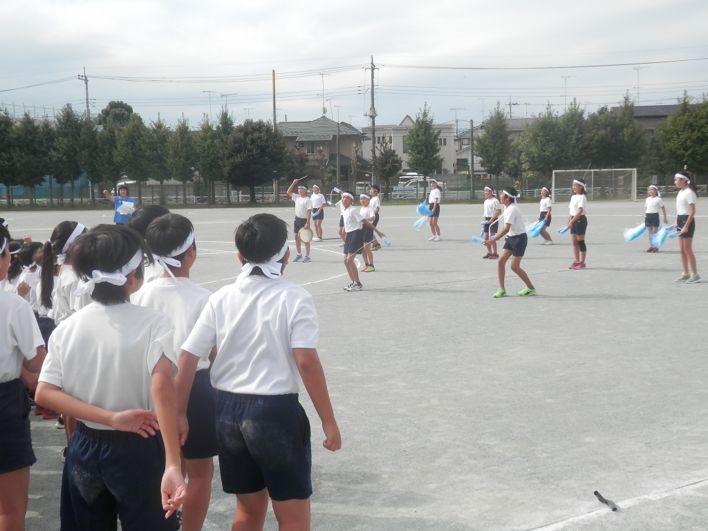 1校時に上柴音頭の並び方と応援練習をしました。応援練習は、休み時間に高学年の子供達が低学年の教室に行き練習を重ねています。今日は、校庭で全体練習をしました。元気なかけ声が校庭に響き渡りました。がんばっています。