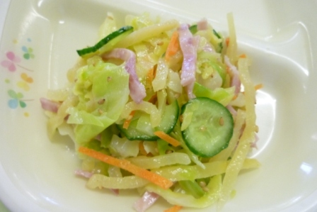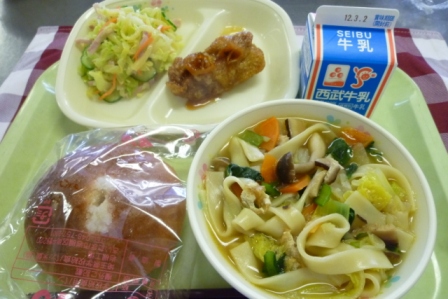 牛乳 さきたまライスボール とり肉のレモン煮 たくあんサラダ