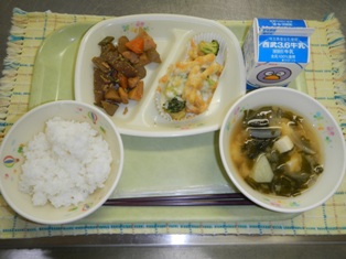 ごはん 牛乳 鶏肉とごぼうの炒り煮