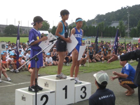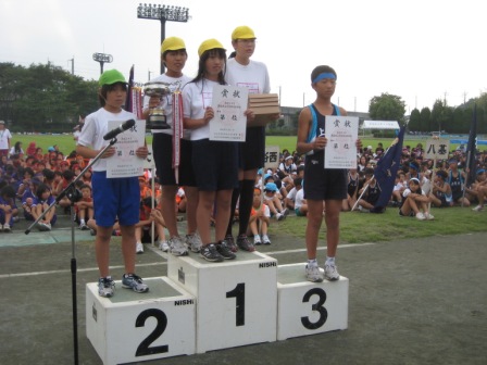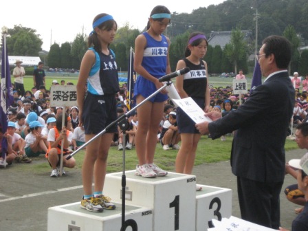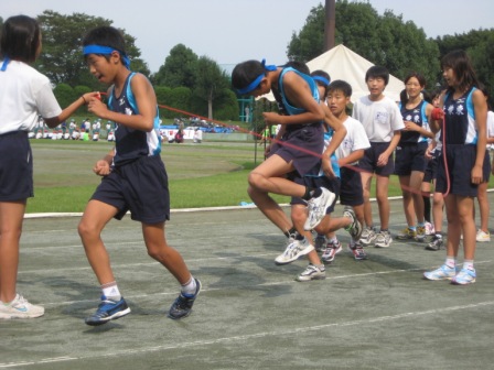 市内の6年生が集まり、親善運動会が仙元山陸上競技場で開催されました。本校の選手は100m走、ハードル走、走り幅跳び、走り高跳び、ボール投げ、学級対抗縄跳び、リレーで多くの入賞者があり、表彰を受けることができました。特に女子持久走では、大会新記録を樹立したことは、記録に残る快挙です。しっかりした応援も元気を与えてくれました。