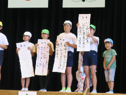 たくさんの保護者の皆様や地域の皆様、近隣の保育園の園児の皆さんにご来校いただき、賑やかで楽しい七夕集会となりました。児童会による劇や猛獣狩りのゲーム、いじめ撲滅宣言の発表など盛りだくさんの内容で、体育館に笑顔があふれていました。
