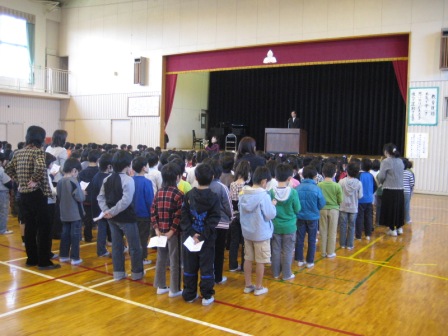 2学期終業式を行いました。各学年のがんばったことや子ども達が輝いていたことを伝えた後、全員で「ジングルベル」を歌いました。「ジングルベル」の歌詞は本校校歌の作詞者である宮沢章二先生によるものです。