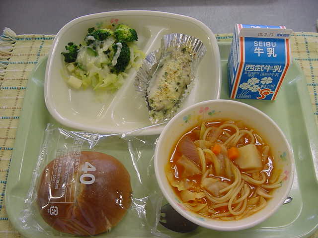 牛乳 米粉パン 白身魚のハーブパン粉焼き