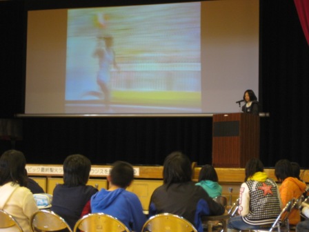 6年生の社会科「新しい日本、平和な日本へ」の学習では、戦後19年間の日本の発展の様子を東京オリンピック聖火入場アナウンスにまとめて発表しました。最終聖火ランナー坂井義則さん(1945年8月6日に広島県で生まれる)の映像に合わせた発表には、学習した内容が臨場感たっぷりに込められていました。