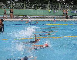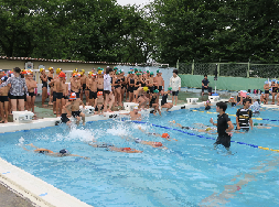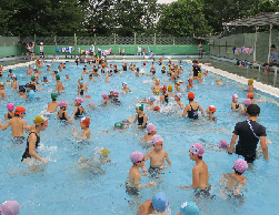 猛暑の中、プール開放にたくさんの子どもたちが参加して、気持ちよさそうに泳いでいました。