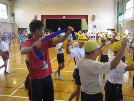 22日(水)の業間休みの時間に、上柴婦人会の方々をお招きし、5・6年生と職員とが合同で上柴音頭の練習をしました。運動会当日は保護者の方々や参観者の皆様にも一緒に踊っていただく予定です。タオル(手ぬぐい)をお持ちになってください。「輪になって~」踊りましょう。よろしくお願いいたします。