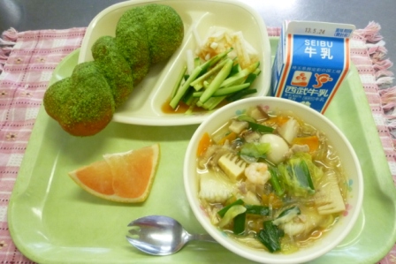 牛乳 抹茶揚げパン スティック野菜 グレープフルーツ