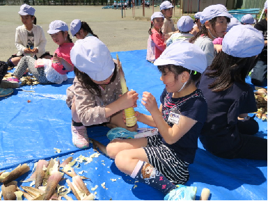 2年生がたけのこの皮をむく作業をしました。初めての作業に悪戦苦闘していましたが、がんばってやり終えました。たけのこは、明日の給食の「たけのこごはん」の材料になります。明日の給食が楽しみですね。2年生のみなさん、ありがとう!