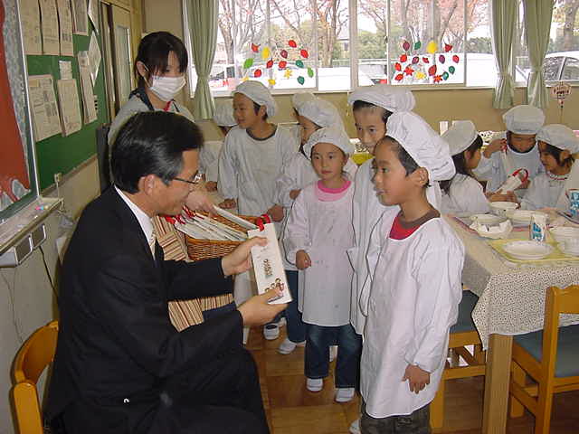 食事の後には、校長先生からお祝いの「千歳飴」をいただきました。