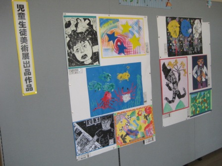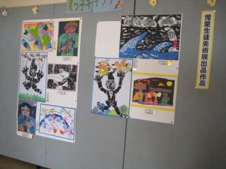 22日、23日に熊谷ドームで行われた小・中学校児童生徒美術展に出品した作品を、東西の昇降口ギャラリーと職員室廊下に展示しました。子ども達は友達の力作をよく見ています。