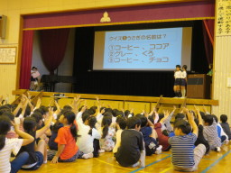 今回の児童集会は飼育委員会の担当でした。ウサギについてのクイズや飼育委員会からのお願いなど、楽しく盛り上がりました。