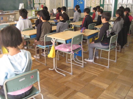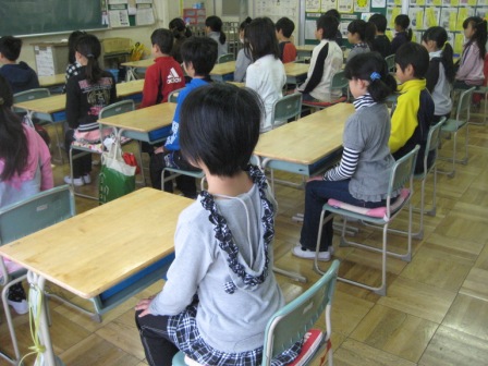 4年生の朝の会は、来週の授業参観に向けて、渋沢栄一の「夢七訓」の暗唱練習が行われています。腰骨タイムでの子ども達は、すでに高学年の雰囲気を漂わせ始めています。