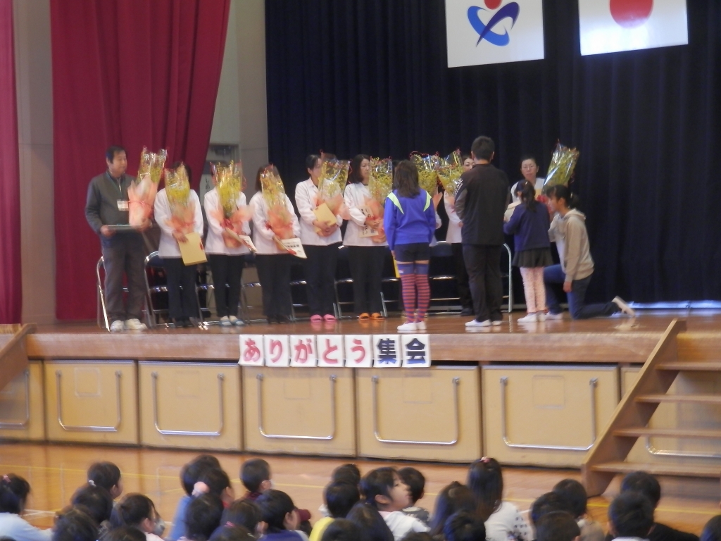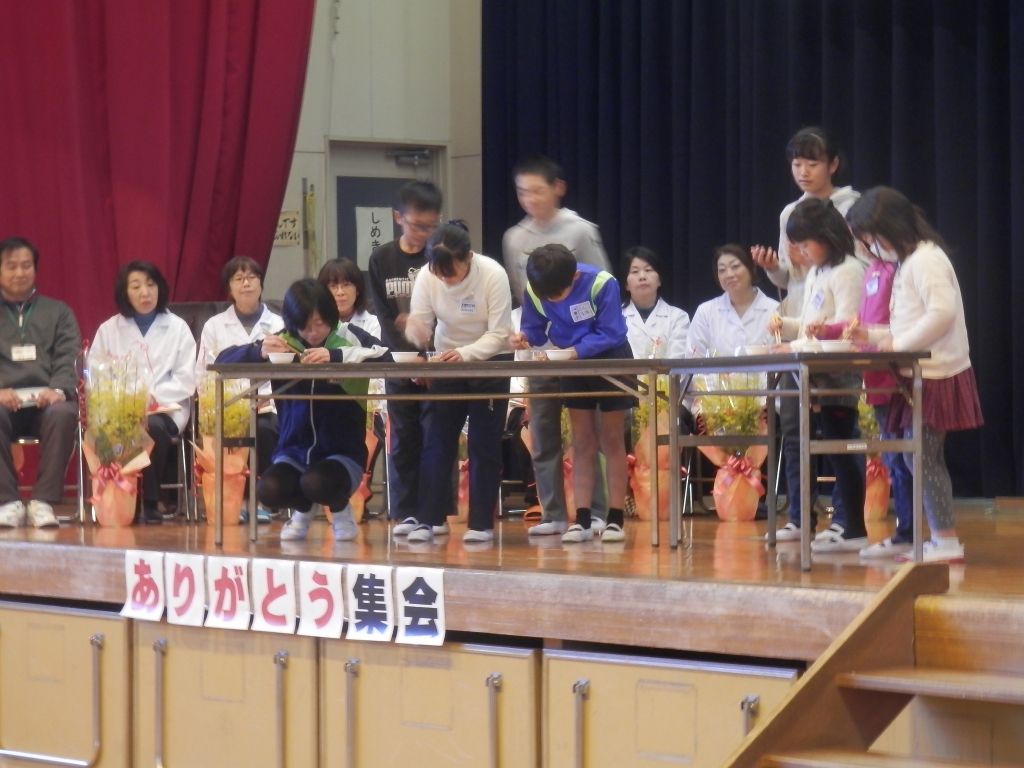 給食調理員さんや用務員さんへの感謝の集いを「ありがとう集会」が体育館で開催しました。給食委員会の子供たちが企画し進行していました。お礼の作文を発表したり、はし名人や給食大賞の発表もありました。おいしい給食を毎日提供してくれたり、学校内外の環境整備をしてくれたりといつも大変お世話になっております。感謝の気持ちを元気なあいさつでお返ししましょう。