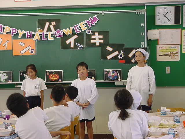今日は5年2組のハロウィンバイキングでした。