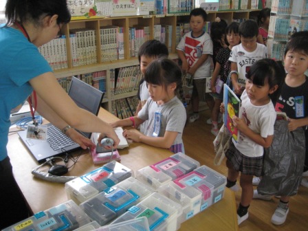 6月を読書の推進月間(あじさい読書月間)として取り組んでいます。クラスや個人の貸し出しがすすんでいます。1年生も図書室の利用が上手になりました。