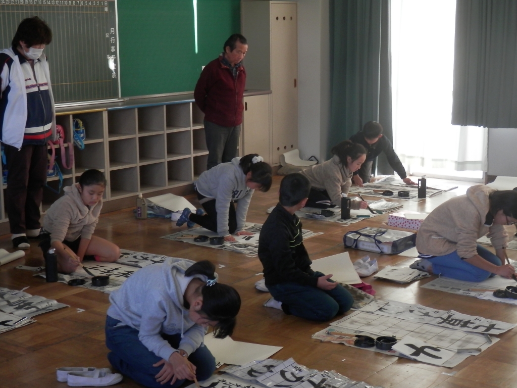 市や県の書きぞめ展に出品するための校内練習が始まっています。今年は、外部のボランティア講師として、荒井安夫さん、原智恵子さん、石井麗子さんの3人の方々にお世話になっています。ありがとうございます。また、選手として子供たちは、精一杯練習に励んでいます。
