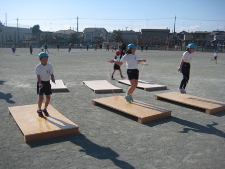 さっそく縄を持った子ども達が使って練習し始めています。3学期いっぱい設置していく予定です。