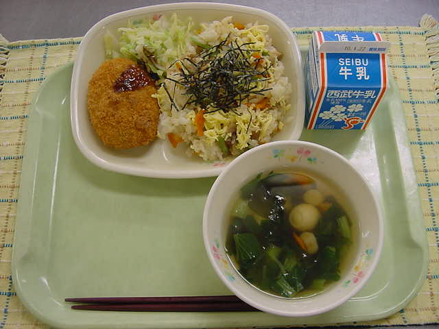 牛乳 ちらし寿司 コロッケ・茹でキャベツ すまし汁
