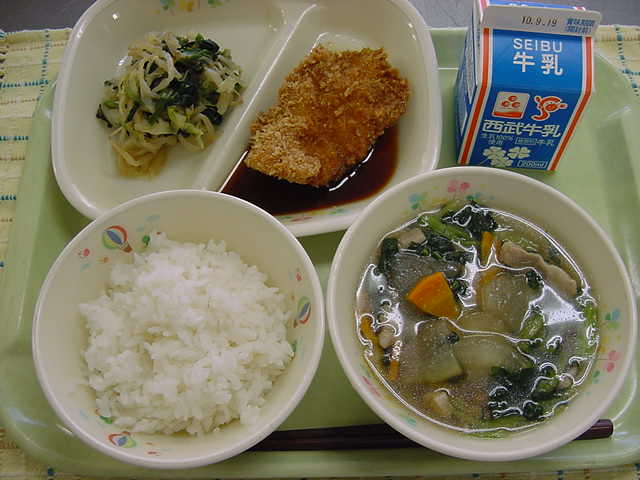 牛乳 ご飯 カツ煮 煮びたし 冬瓜のスープ