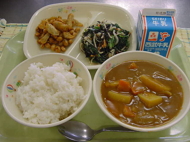 牛乳 カレーライス ごぼうと大豆のカリカリ揚げ