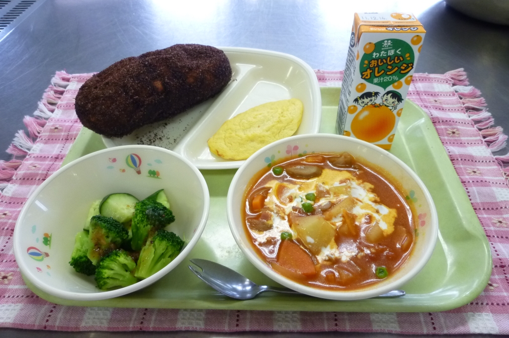 オレンジジュース ココア揚げパン オムレツ