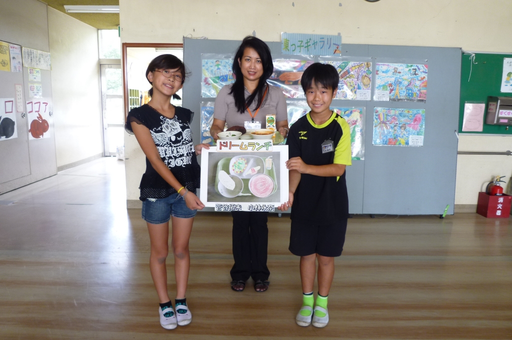 授業で作ったドリームランチ            ALTの先生と一緒に!
