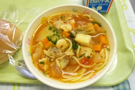 本校自慢のスープスパゲティ! 子どもたちも残さず食べました。