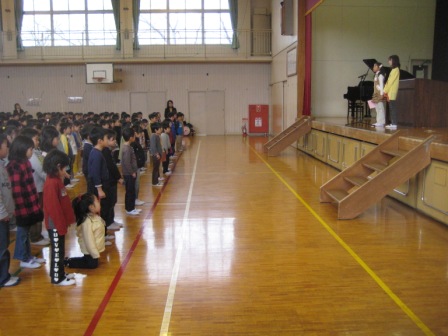 本日、3学期始業式を行いました。始業式では、「心と体のスイッチをONにしましょう。みんなの心と体のスイッチをONにするのは腰骨を立てることです。腰骨を立て、スイッチをONにして3学期をがんばりましょう。」と話しました。また、児童代表の2人は、自分の抱負をしかkりと発表しました。