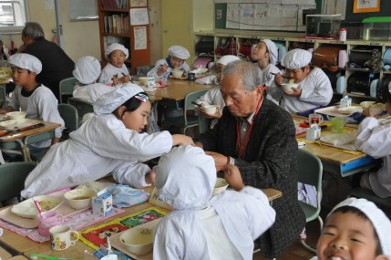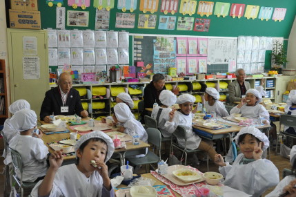 毎日登下校を見守っていただいている防犯パトロールの皆様をお迎えして、防犯パトロール感謝の集いを行いました。授業を参観していただいてから各クラスで給食を一緒に食べました。