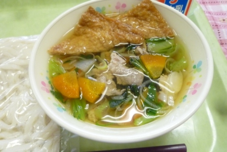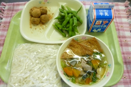 牛乳 きつねうどん 白玉団子のきな粉あえ 枝豆