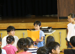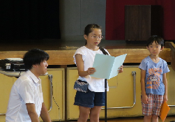 今日は1学期の終業式が行われました。式では児童代表として、2年生の樋口さんと5年生の金子さんが1学期を振り返っての感想を発表してくれました。しっかりした態度で、とても立派でした。