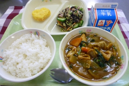 牛乳 冬野菜のカレーライス ハートのオムレツ