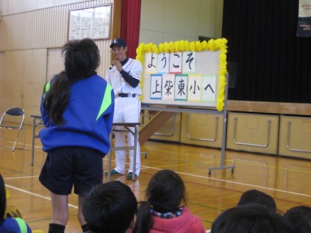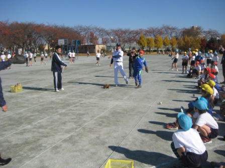 本日、埼玉西武ライオンズOB柴田博之さんを招いて、5年生の「夢を叶えるために大切なこと」の授業を行いました。柴田さんからは、①感謝すること、②好きなことを続けること、③今を大切にすることを教えていただきました。講話の後、実技・給食を共にしていただき、スポーツ選手の技と優しさを知る時間を過ごすことができました。柴田さん、関係者の方々に感謝いたします。ありがとうございました。