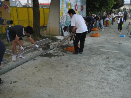 本日(21日)午前7時から、PTA奉仕作業が行われました。たくさんの保護者の方々に参加していただき、校庭の側溝掃除、草取り、校舎内のガラスふき、トイレ掃除などを計画どおりすすめることができました。2学期に向けて学校がきれいになりました。ありがとうございました。